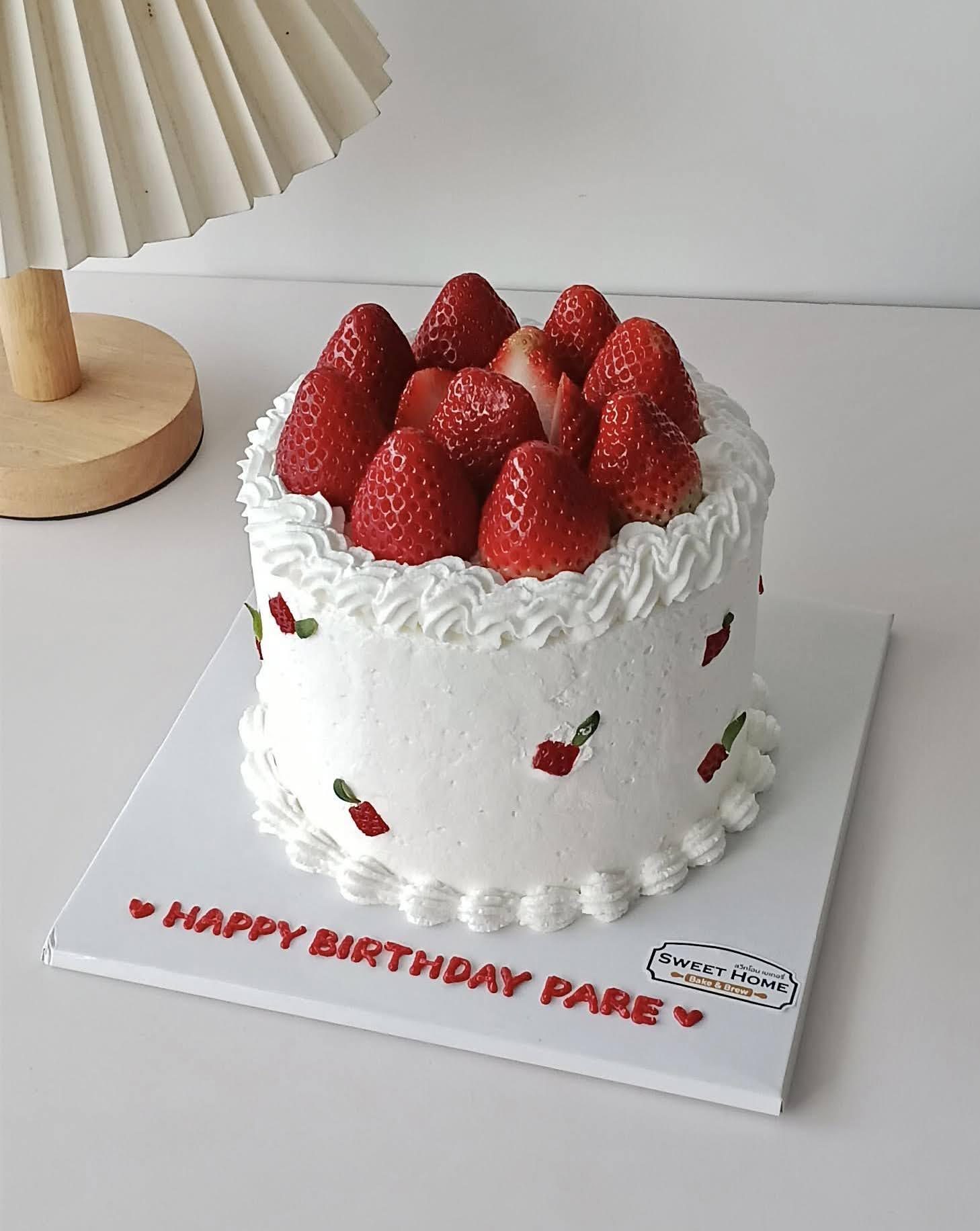 เค้กตกแต่งผลไม้สด, เค้กสตรอเบอร์รี่, เค้กตกแต่งดอกไม้สด