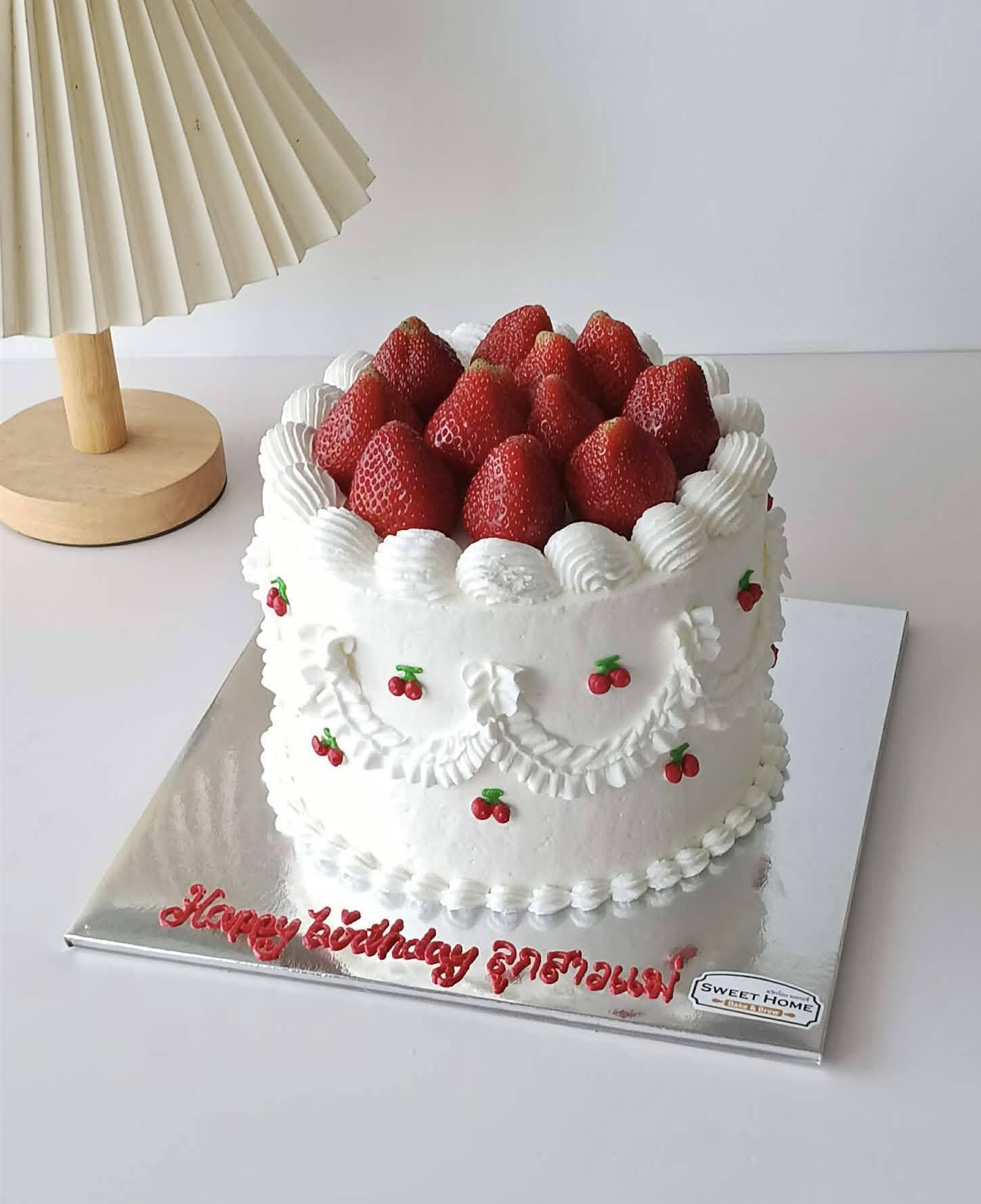เค้กตกแต่งผลไม้สด, เค้กสตรอเบอร์รี่, เค้กตกแต่งดอกไม้สด